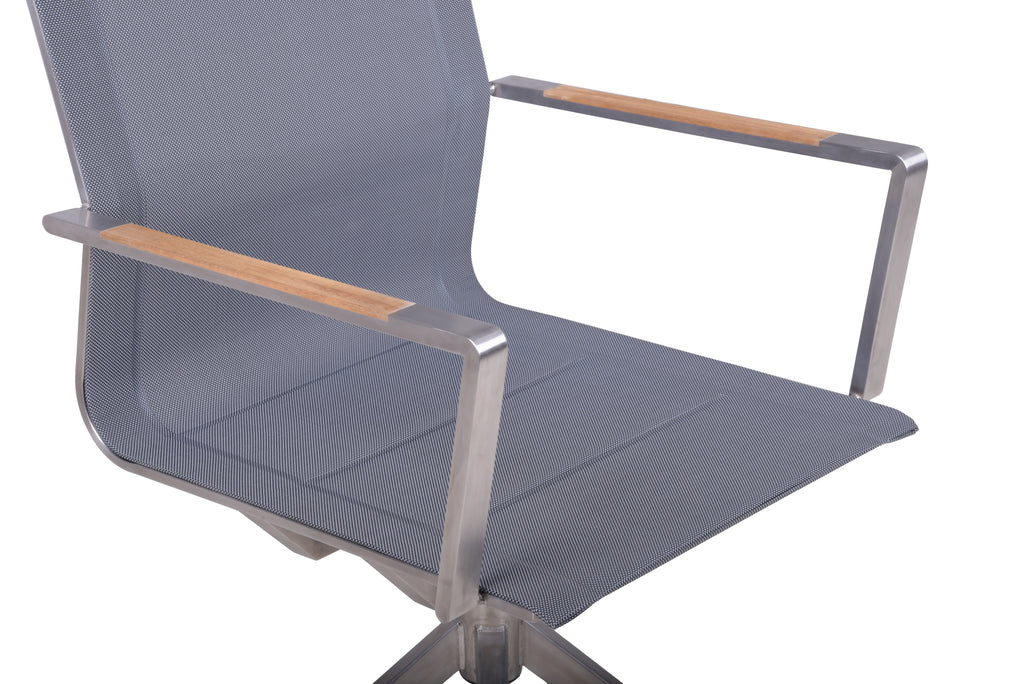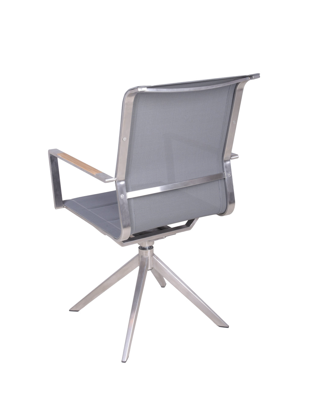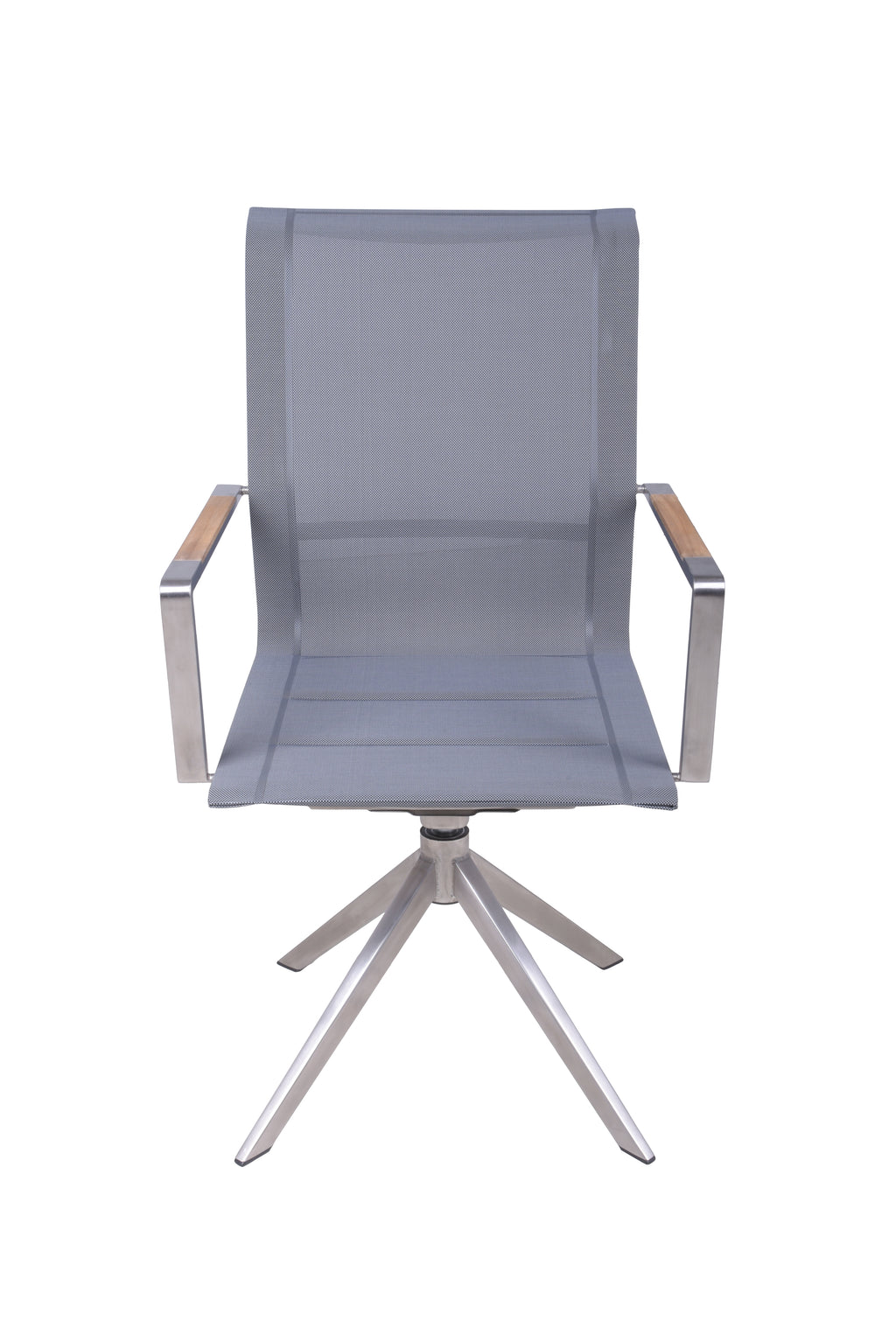 Perfekt für den Esstisch auf der Terrasse oder als flexible Sessel in Ihrer Lounge-Ecke. Die Drehfunktion ermöglicht es Ihnen, sich mühelos Ihren Gesprächspartnern zuzuwenden oder den Blick über den Garten schweifen zu lassen. Die Armlehnen aus edlem Teakholz bieten dabei eine angenehme Auflage.