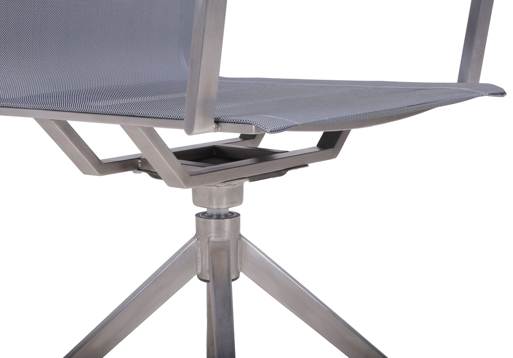 Diese Stühle sind für jedes Wetter gerüstet: Das Gestell aus gebürstetem Edelstahl #304 ist robust, das graue Kunststoffgewebe ist strapazierfähig und die Sitzfläche ist mit innovativem, schnelltrocknendem Schaum gefüllt. So sind die Stühle auch nach einem Regenschauer im Nu wieder einsatzbereit.