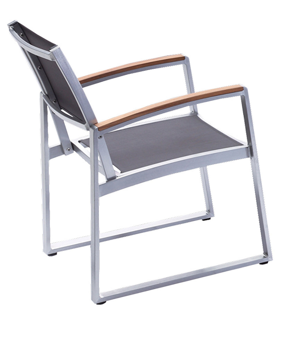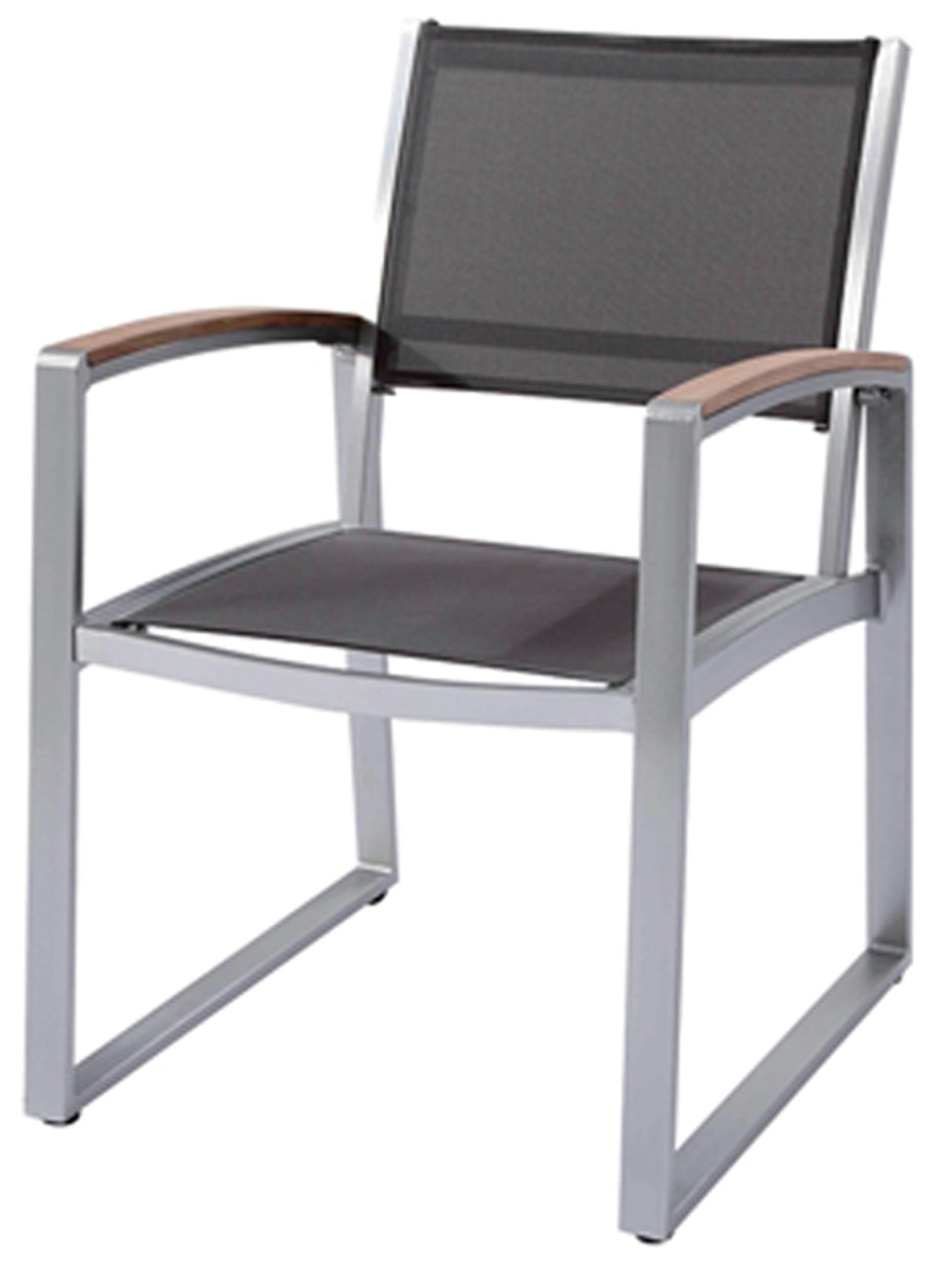 Nehmen Sie Platz und erleben Sie entspannte Stunden. Die Sitz- und Rückenfläche aus strapazierfähigem, grauem Kunststoffgewebe bietet einen angenehmen Sitzkomfort, während die Armlehnen aus Nonwood in natürlicher Holzoptik eine warme, einladende Note hinzufügen.