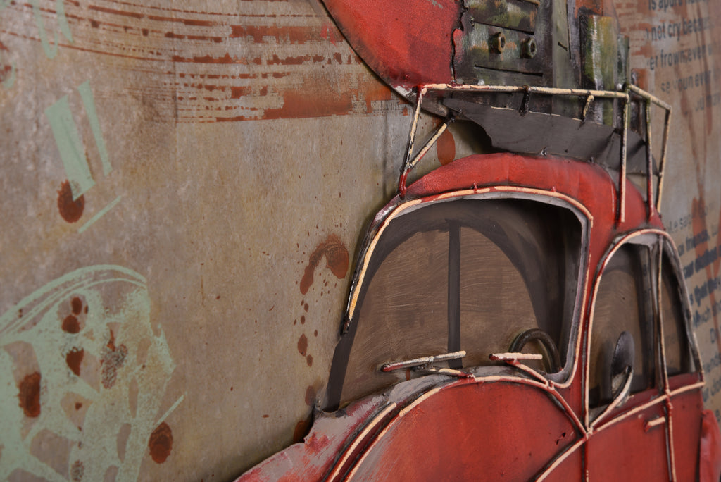 Wandbild Oldtimer, Metall-Wanddeko, Vintage-Auto-Bild, 3D-Kunst