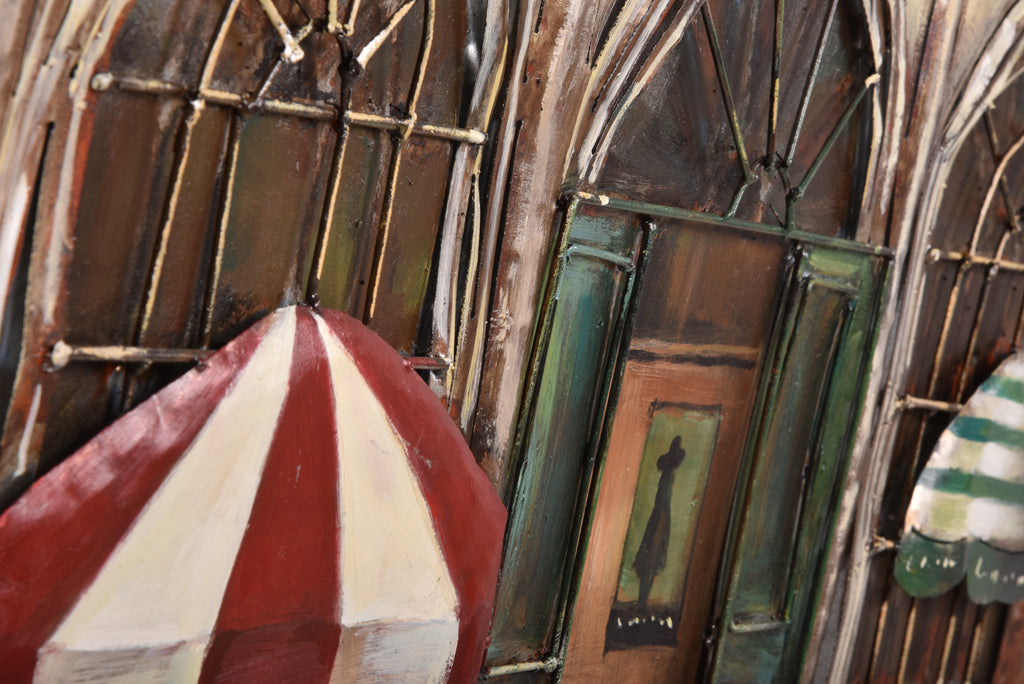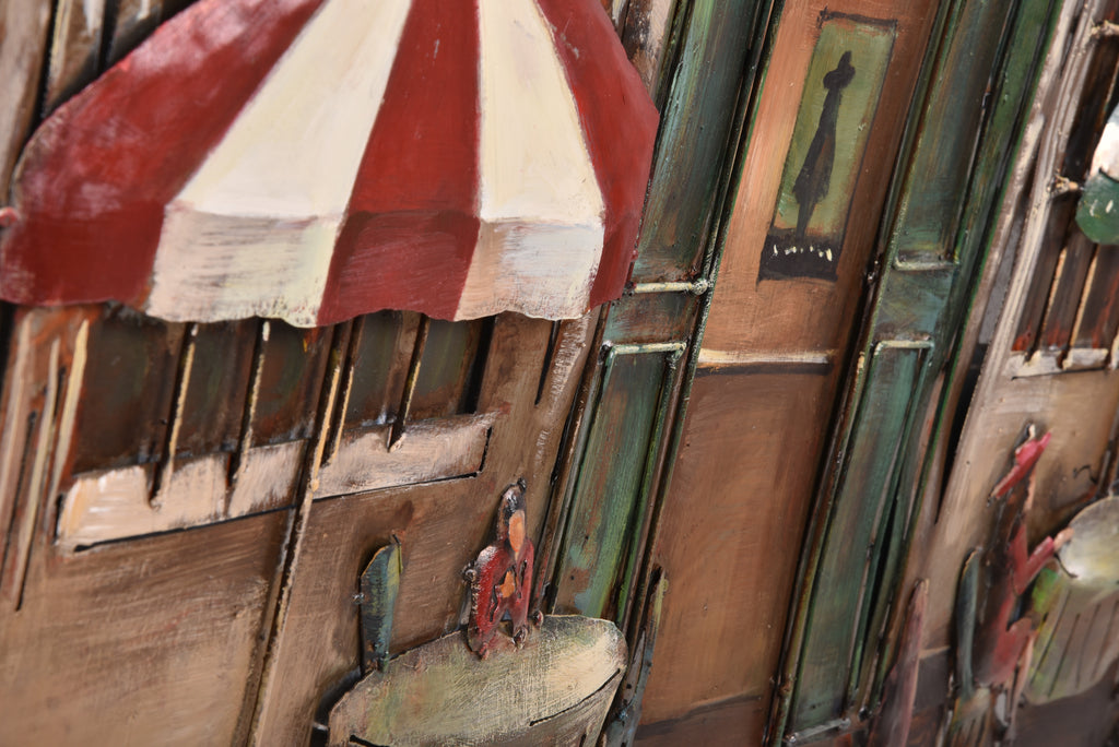 Das Vintage-Motiv ist aus hochwertigem Stahl gefertigt und besticht durch seine beeindruckende Tiefe. Die handgefertigte Malerei verleiht dem Bild eine dreidimensionale Wirkung und lässt die Szene lebendig werden. Es ist ein Kunstwerk, das Geschichten erzählt und zum Verweilen einlädt.