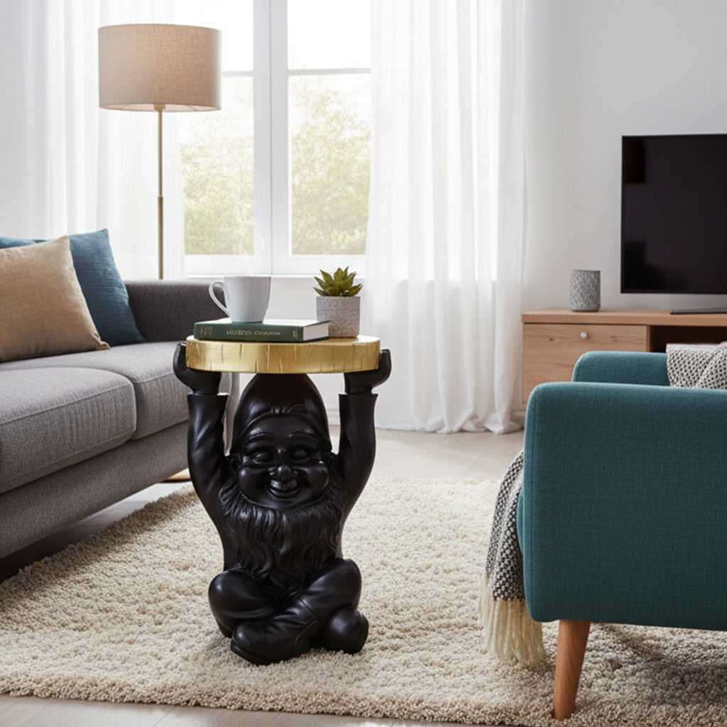 Dieser Beistelltisch rund ist mehr als nur eine Ablage: Der Gartenzwerg als kunstvoller Tischfuß macht ihn zu einem echten Statement-Piece. Ob du einen Beistelltisch Design für dein Wohnzimmer suchst, einen Telefontisch neben dem Sofa planst oder einen Beistelltisch klein für den Flur brauchst – hier bekommst du Funktion und dekorative Wirkung in einem stimmigen Look.