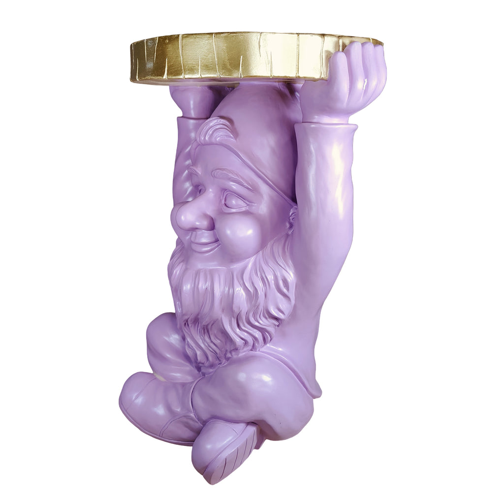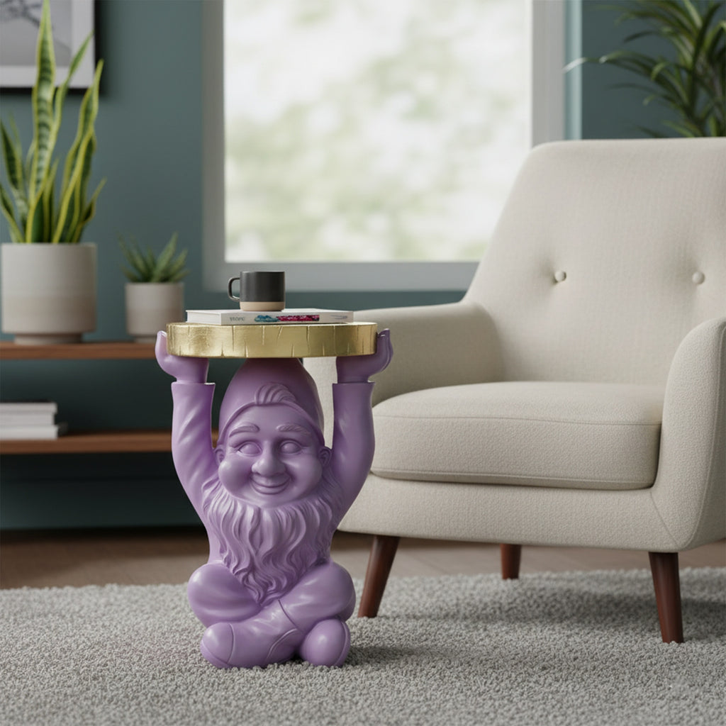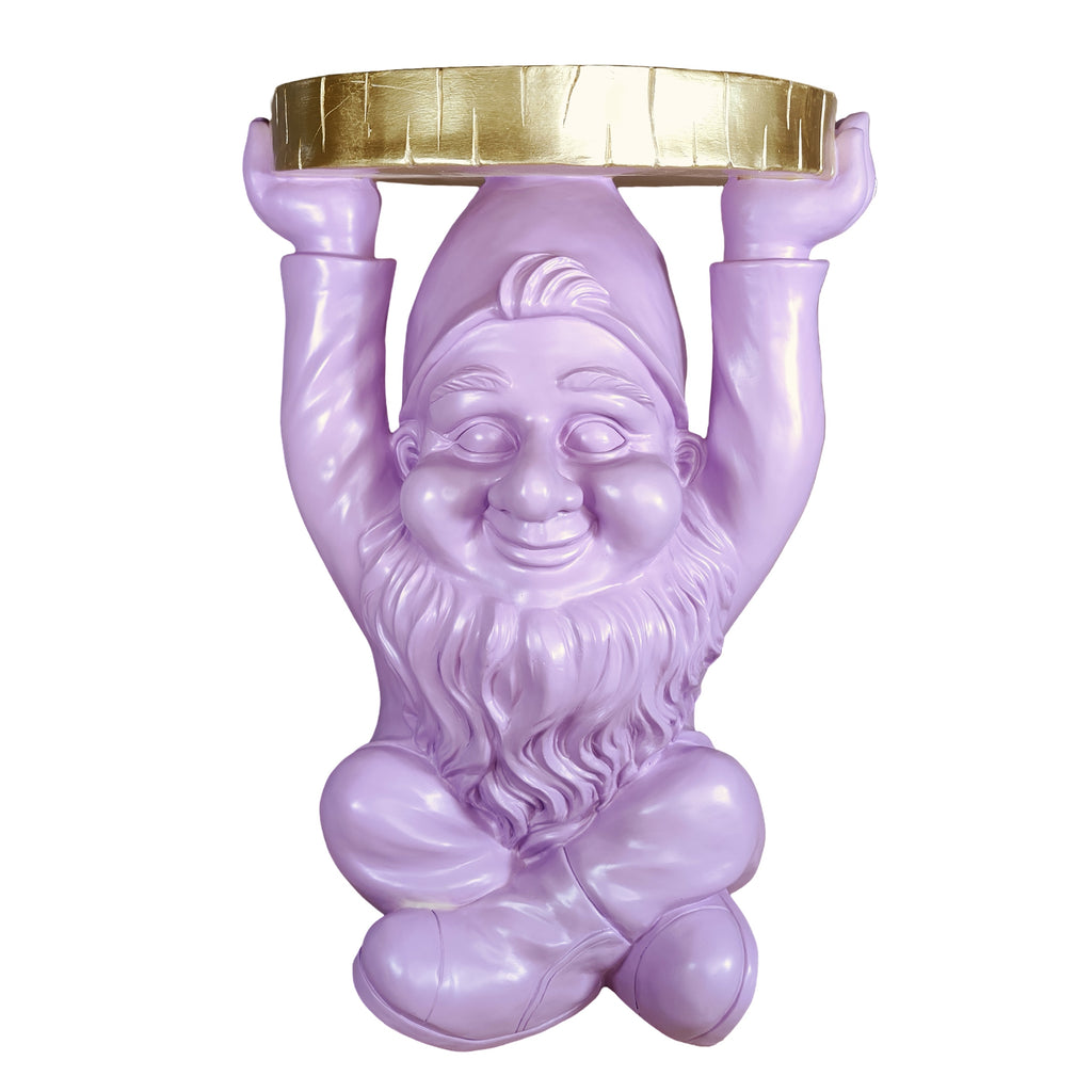 Als Beistelltisch Garten sorgt der Zwergen-Tisch auf Terrasse, Balkon oder im Wintergarten für ein stilvolles Highlight. Die runde Abstellfläche bietet Platz für Glas, Tasse, Pflanze oder Kerzen und wirkt durch den goldenen Ton besonders edel. Durch die Auswahl in Schwarz-Gold oder Lila-Gold lässt sich der Tisch passend zu modernem, kreativem oder klassischem Ambiente kombinieren.