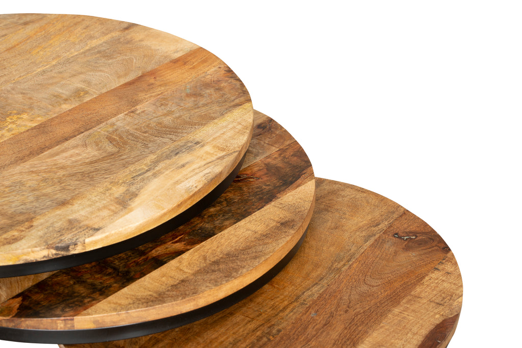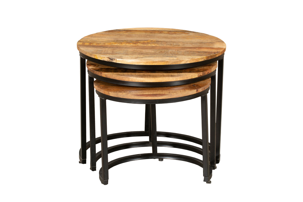 Ob als gestaffelte Couchtisch-Gruppe, einzeln im Raum verteilt oder platzsparend ineinander geschoben – diese Satztische passen sich jeder Situation an. Nutzen Sie sie als Ablage für Zeitschriften, als Bühne für Dekoration oder als praktische Helfer bei Besuch. Ihr industrieller Charme verleiht jedem Wohnzimmer einen Hauch von Loft-Atmosphäre.