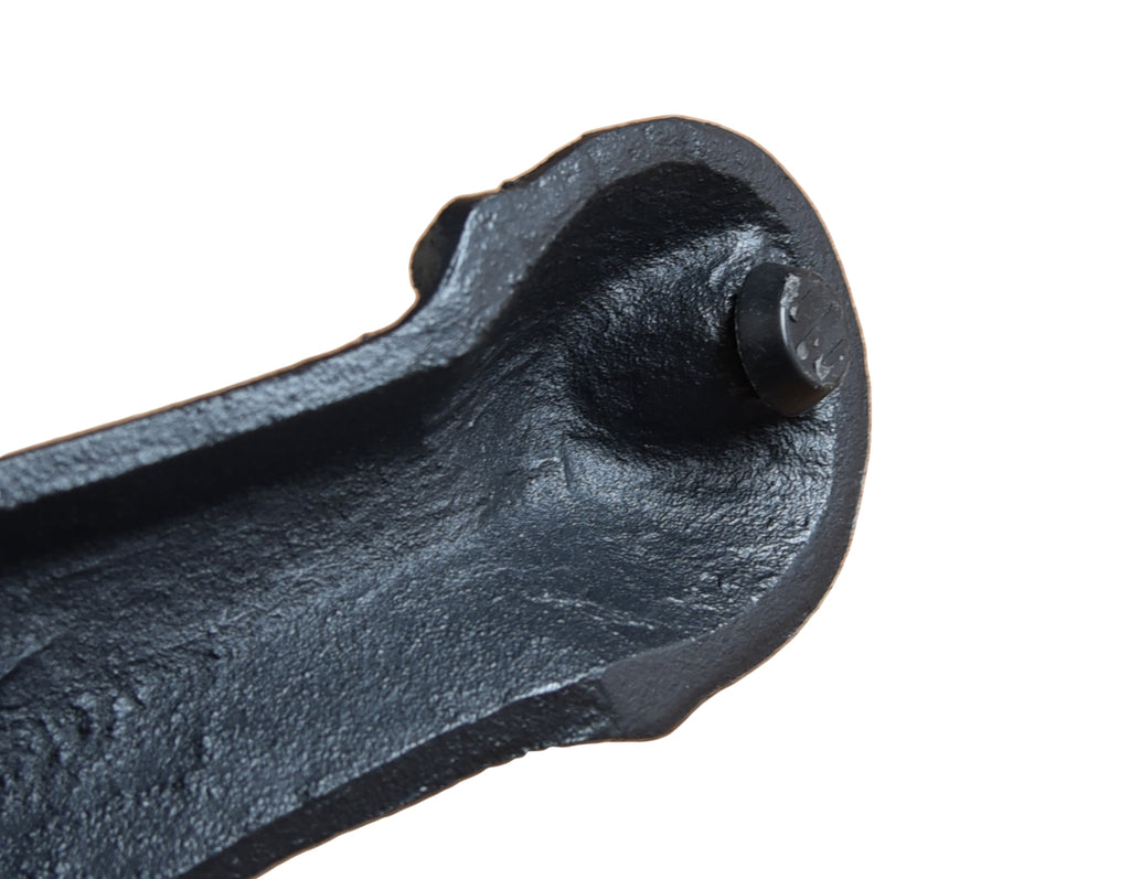 Die Tischplatte aus kunstharzbeschichteter Spanplatte ist für hohe Beanspruchung ausgelegt: Sie ist kratzfest, hitzebeständig und pflegeleicht. Das schwarze Gusseisen-Gestell ist nicht nur dekorativ, sondern auch ein Garant für jahrzehntelange Haltbarkeit.