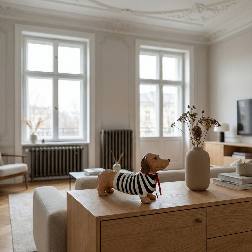 Stell dir die beiden Deko-Dackel neben einen Pflanztopf, an die Haustür, auf die Terrasse oder unter ein Regal im Wohnbereich – sie wirken sofort wie ein kleines Design-Statement. Und weil sie nicht „niedlich beliebig“, sondern richtig stylisch sind, passen sie genauso gut zu moderner Gartendeko wie zu Landhaus- oder Skandi-Elementen.