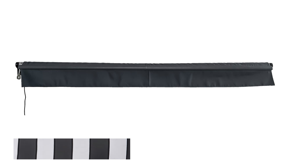 Das Tuch aus hochwertigem Polyester ist robust, UV-beständig und wasserabweisend. Das stabile Gestell aus Aluminium und Stahl sorgt für Sicherheit und Langlebigkeit. Dank der Fernbedienung haben Sie den Schattenwurf jederzeit unter Kontrolle, ohne aufzustehen. Für den Notfall ist auch eine Handkurbel dabei.