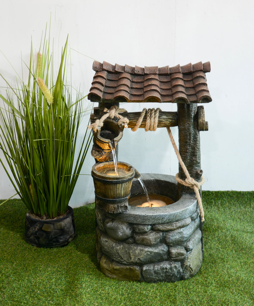 Gefertigt aus einer robusten Mischung aus Polyresin und Fiberglas, überzeugt dieser Brunnen durch seine authentische Steinoptik und seine hohe Widerstandsfähigkeit gegenüber allen Witterungsbedingungen. Das Komplettset mit Pumpe und LEDs ist einfach zu installieren und sofort einsatzbereit.