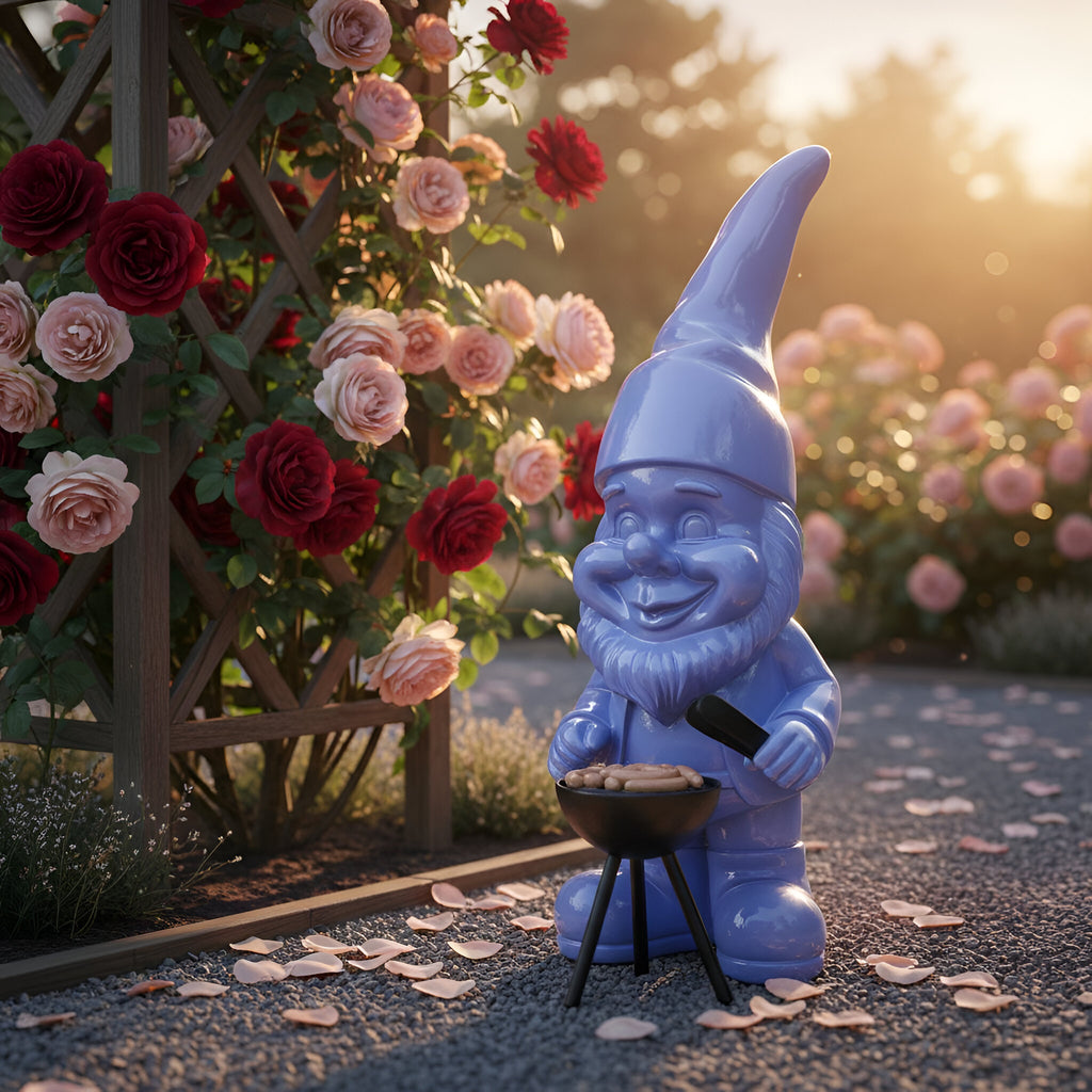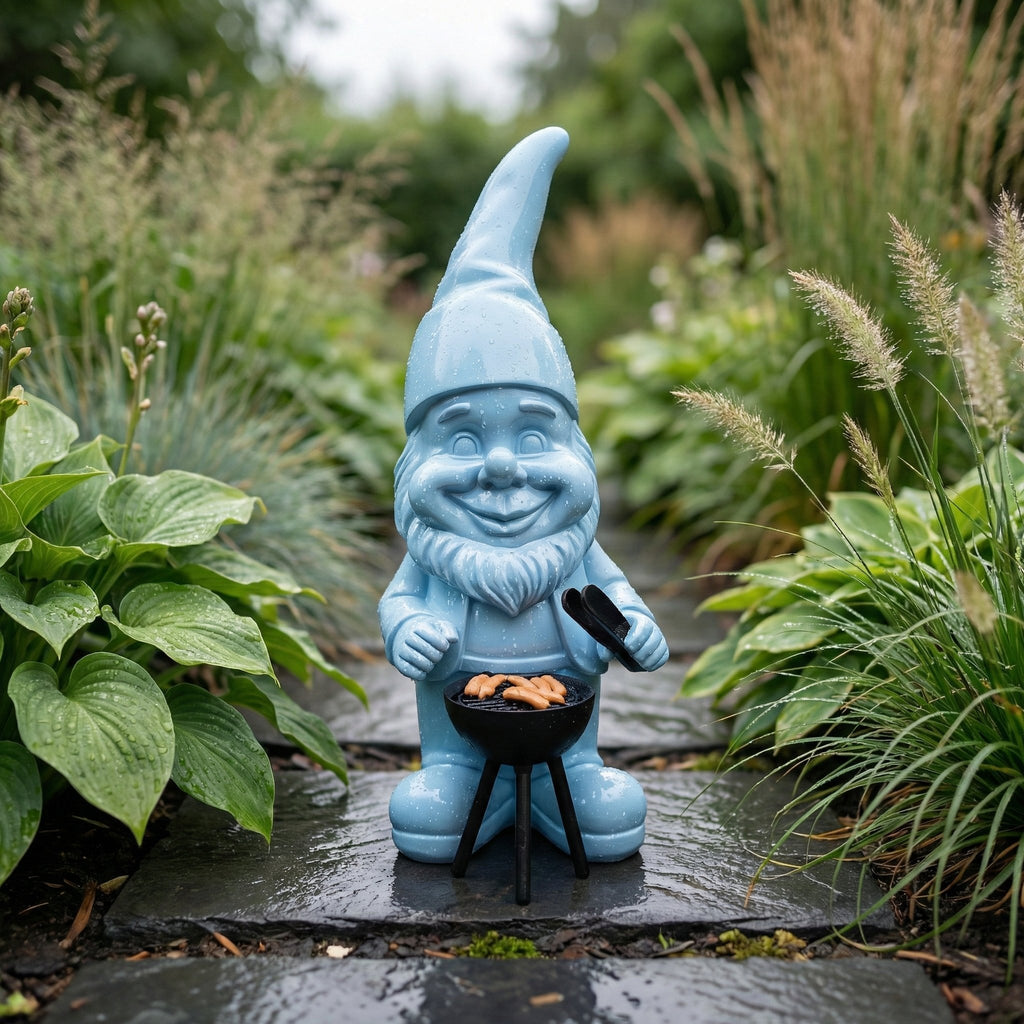 Ausführung: Gartenzwerg am Grill, pastellige Hochglanz Optik