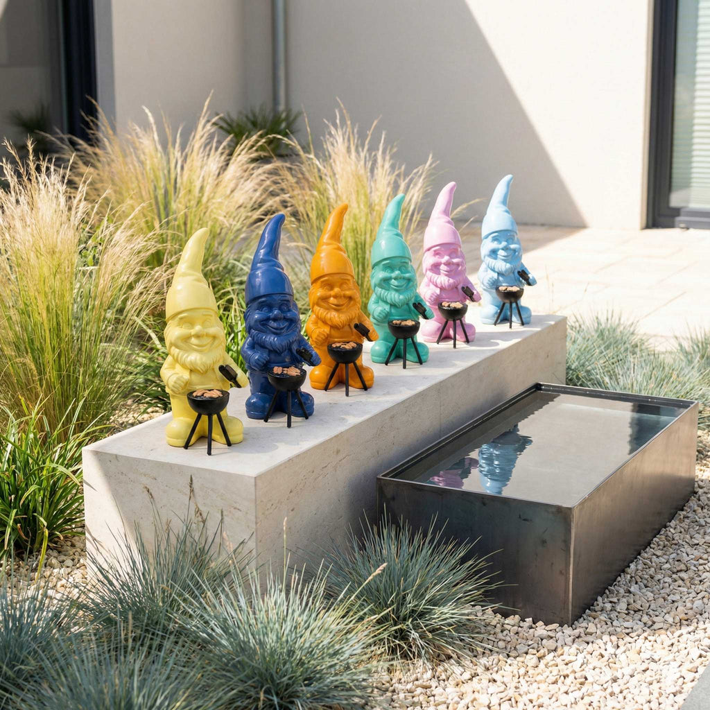 Du kannst zwischen zwei Größen wählen: klein für Regal, Beistelltisch oder als Akzent im Beet, groß für Terrasse, Balkon oder Eingangsbereich. Mit sechs Farbvarianten passt der GrillPoser in viele Stilwelten, von clean und modern bis bunt und verspielt. Wenn du außergewöhnliche Gartenzwerge kaufen möchtest oder Frustzwerge und besondere Gartenzwerge als Deko Idee suchst, ist diese Figur eine starke Wahl.