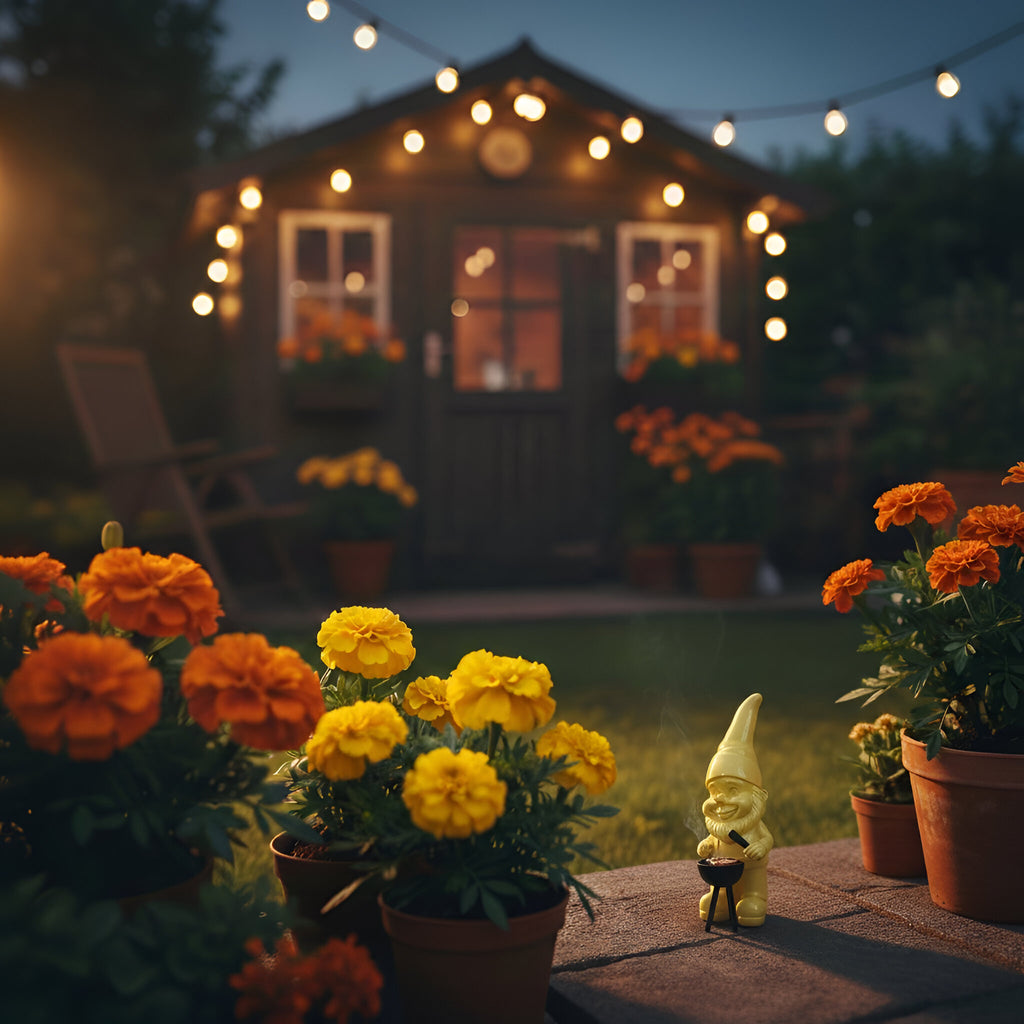 Und falls jemand fragt, warum der Zwerg so zufrieden grinst: Das liegt vermutlich am Dreibeingrill mit Bratwurst, der hier ganz offiziell zum Deko Konzept gehört.