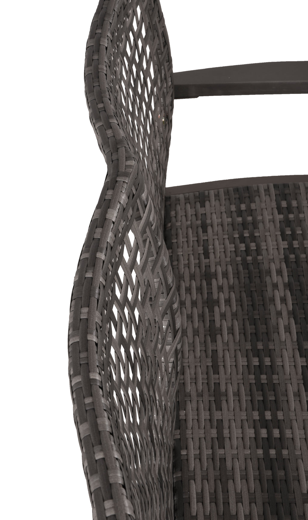 Ob unter der Veranda, auf der Terrasse oder an einem stabilen Ast im Garten – diese Hängebank wird zum Mittelpunkt der Entspannung. Die Kombination aus dem kühlen Grau des Geflechts und dem warmen Ton der Akazienholz-Armlehnen schafft eine zeitlose und elegante Optik.