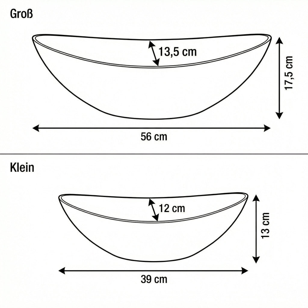 Längliche Bootsform - perfekt für schmale Bereiche und moderne Arrangements