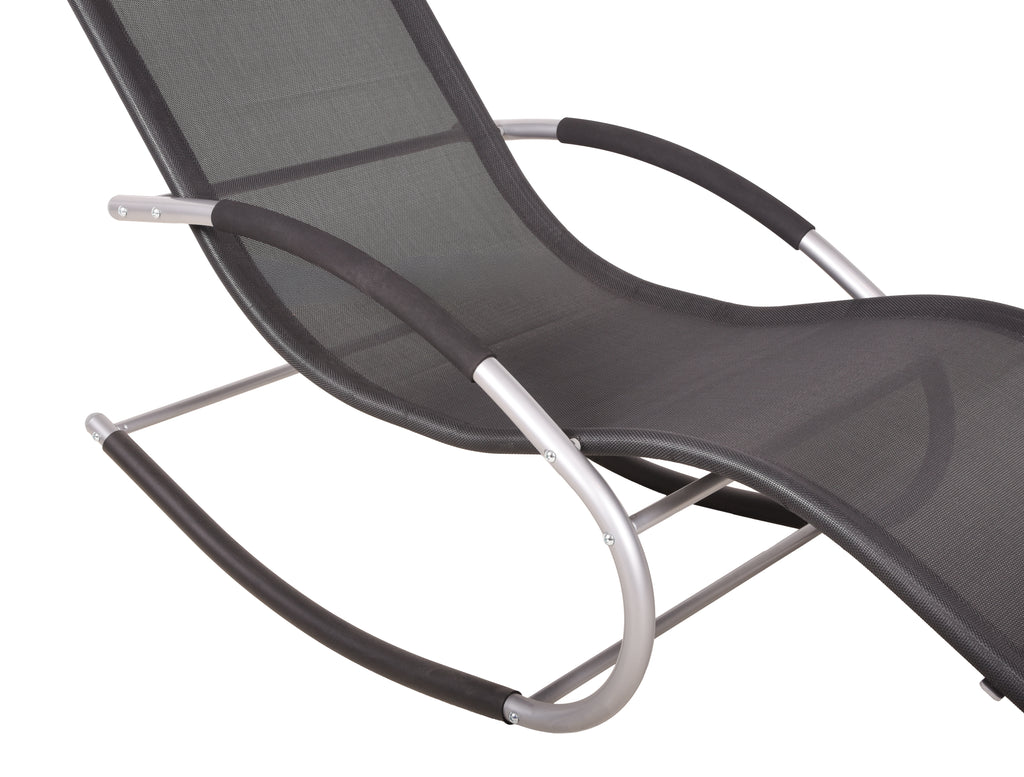 Das stabile Gestell aus silbergrauem Stahl sorgt für einen sicheren Stand, während die Liegefläche aus wetterfestem und luftdurchlässigem Kunststoffgewebe in Schwarz für angenehmen Komfort sorgt. Die hochwertigen Materialien sind pflegeleicht und garantieren langanhaltende Freude an Ihrer neuen Lieblingsliege.
