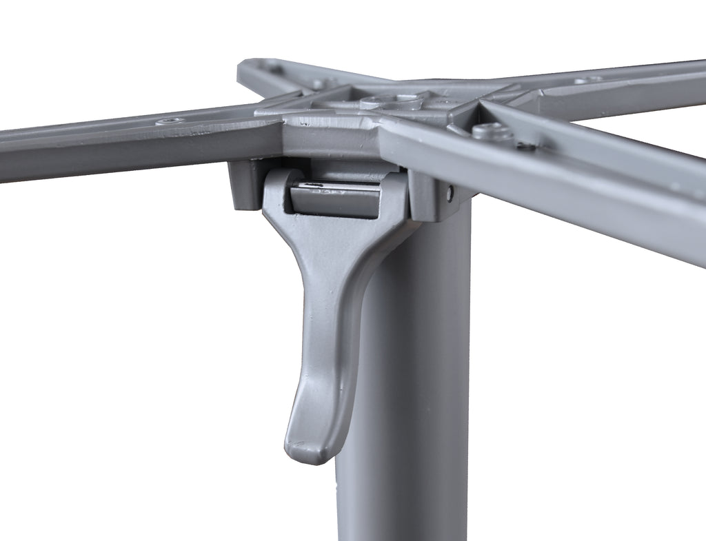 Ein herausragendes Merkmal dieses Modells ist die praktische Klappfunktion. Das Plattenkreuz lässt sich zur Seite neigen, was ein platzsparendes Verstauen der Tische ermöglicht – ideal für Orte mit begrenztem Raum oder saisonalem Betrieb. Die Konstruktion ist leicht und dennoch robust, was den Transport und die Handhabung im Alltag erheblich erleichtert.
