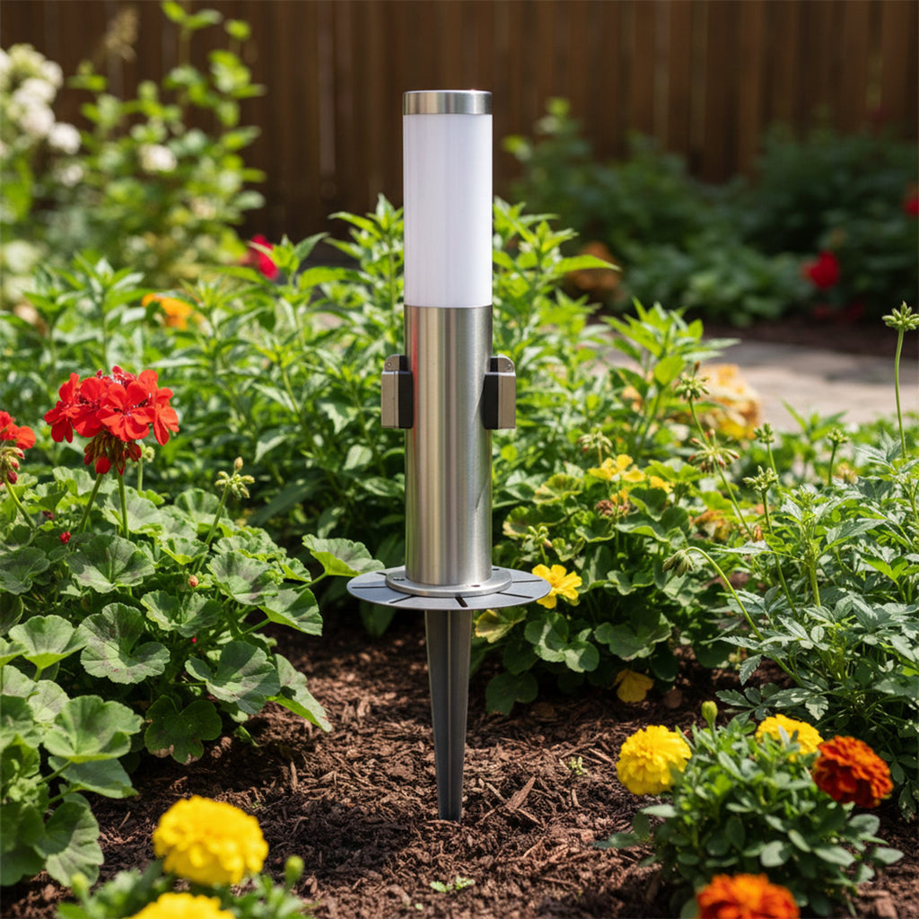 Dank der Pulverbeschichtung ist der Stahl besonders gut gegen Witterungseinflüsse geschützt und für den dauerhaften Einsatz im Außenbereich ausgelegt. Mit einem Gummihammer lässt sich der Spieß leicht in den Boden schlagen und bietet eine stabile Basis für deine Gartenleuchten – perfekt für eine professionelle und zugleich einfach umzusetzende Gartenbeleuchtung.
